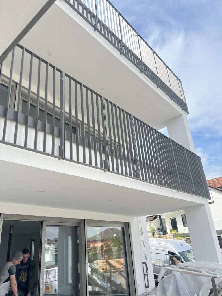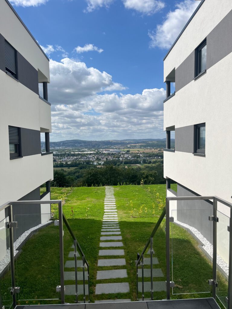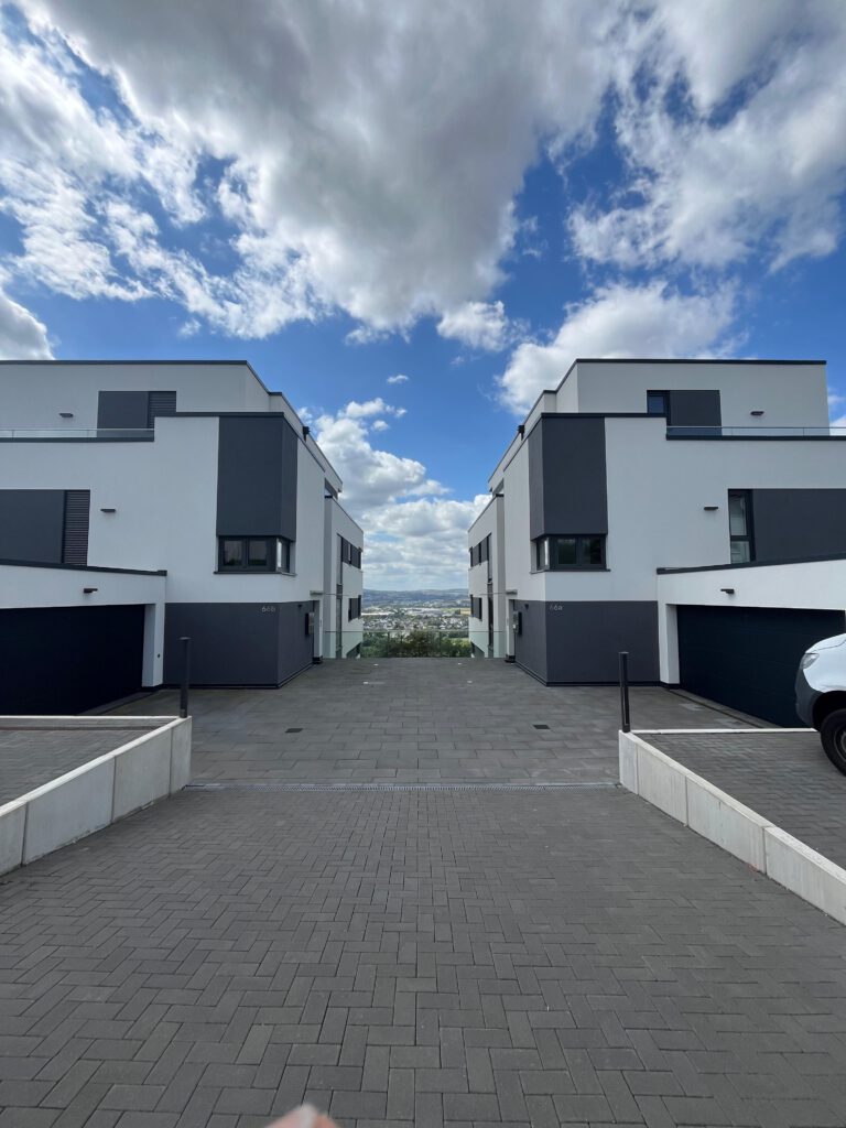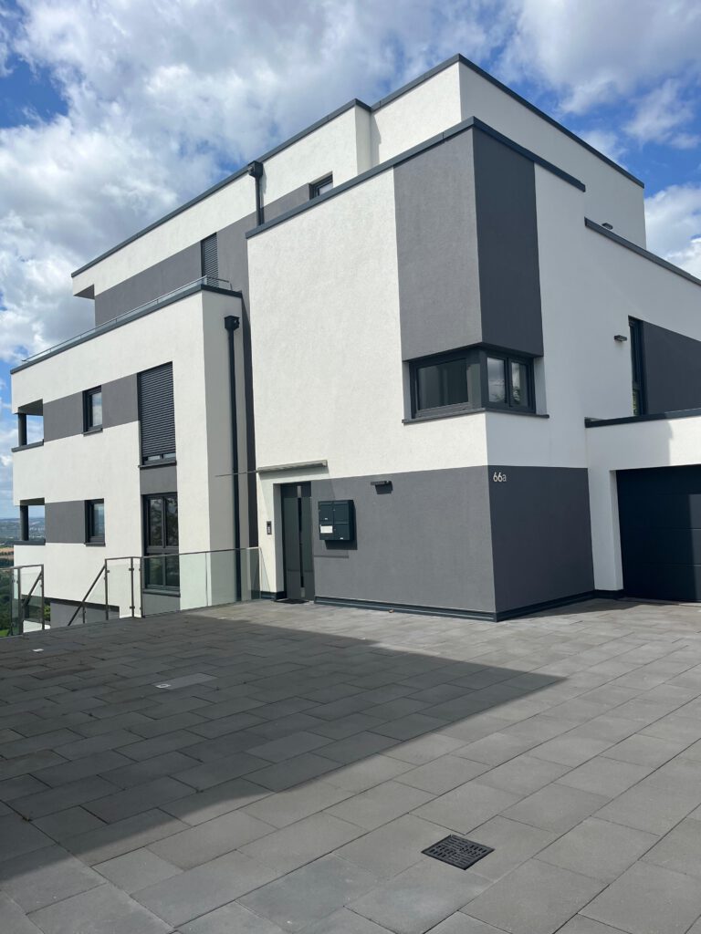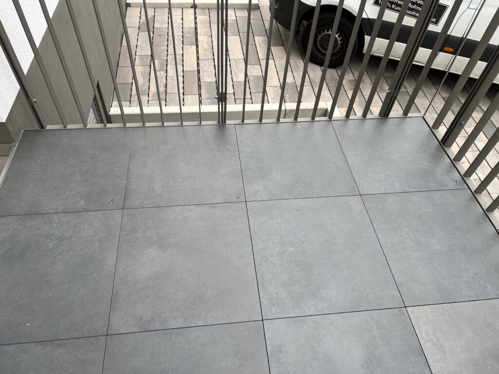 Für die Außenbereiche, insbesondere die Terrassen, wurden widerstandsfähige Terrassenplatten verwendet. Diese Platten sind witterungsbeständig und sorgen durch ihre moderne Optik für eine harmonische Verbindung zwischen Innen- und Außenraum. Die sorgfältig ausgewählten Materialien und deren professionelle Verlegung tragen zu einer hohen Lebensqualität und einem ansprechenden Gesamtbild des Gebäudes bei.