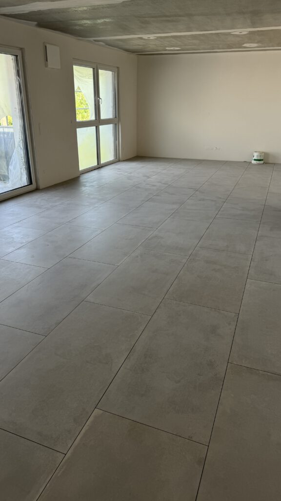 In diesem Mehrfamilienhaus in Oberhonnefeld wurden großformatige Fliesen in den Maßen 60×120 cm verlegt. Diese pflegeleichten Fliesen bieten eine moderne und einheitliche Optik in den Wohn- und Gemeinschaftsbereichen sowie in den Bädern und Küchen. Die Fliesen sind robust und langlebig, ideal für den täglichen Gebrauch in einem Mehrfamilienhaus.​